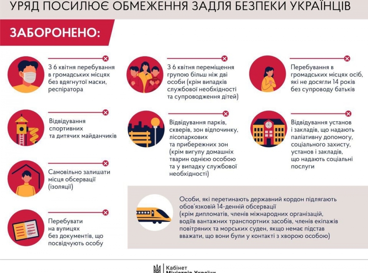 В Украине с 6 апреля ужесточают карантин. С этого числа запрещено: